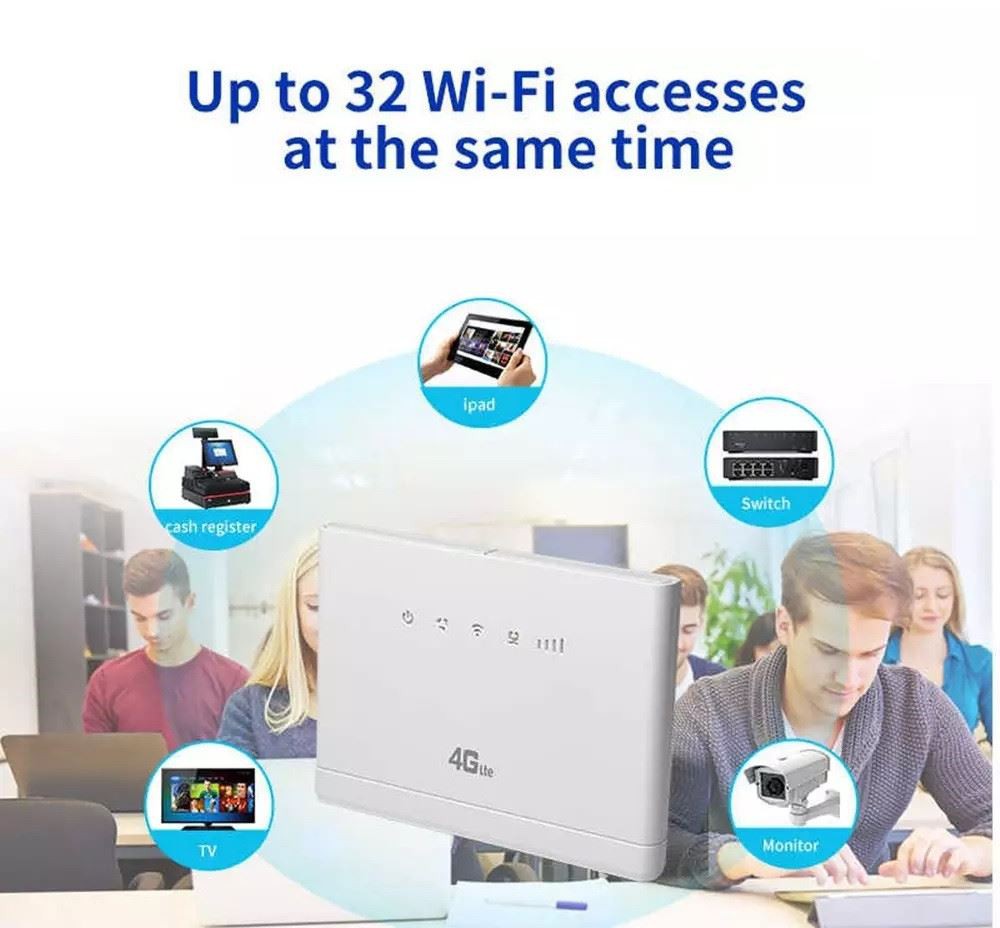 Cé go bhfuil an ródaire 4G ag tarchur wifi, is féidir leis freisin ríomhairí, monatóirí, lasca, scipéid airgid, teilifíseáin agus trealamh eile a nascadh le cáblaí líonra ag an am céanna.