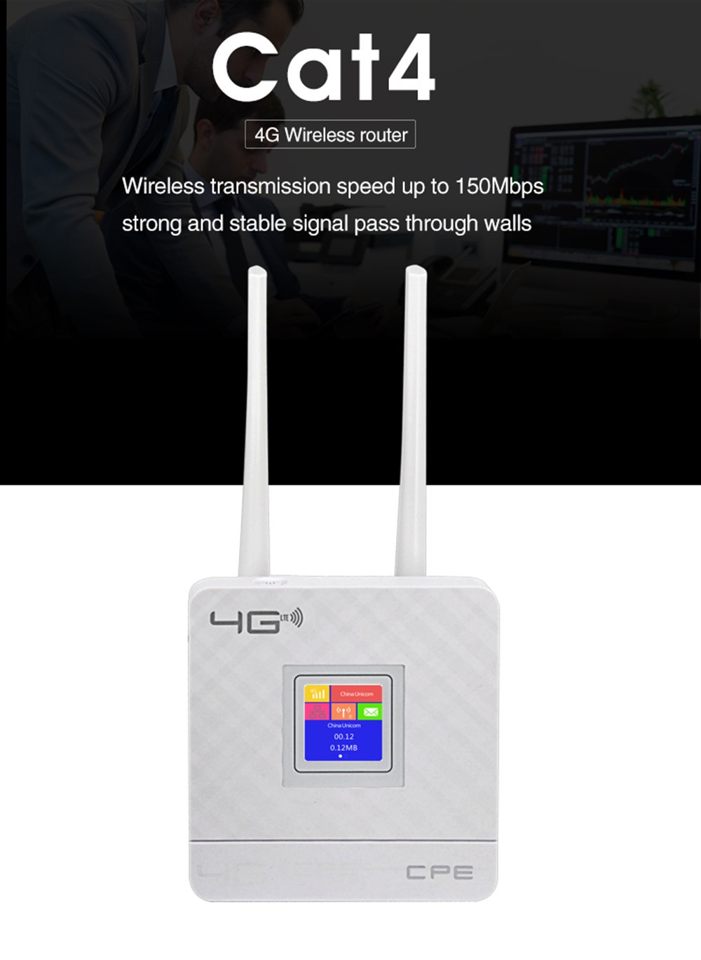 Is ródaire gan sreang 4G ardchumhachta é CPE903 le sliotán cárta sim 4G agus próiseálaí líonraithe MIPS, is réiteach é le haghaidh líonrú Wi{{3}Fi-fhiontar, baile, cuideachta agus oifige. Tá sé ag luí le caighdeán IEEE 802.11b/g/n, sroicheann an ráta sonraí go 300Mbps. Le haeróg sheachtrach déach, tá comhartha Wi-Fi níos cobhsaí agus raon níos faide. Tacaíonn sé le 10 n-úsáideoir Wi-Fi ag an am céanna.